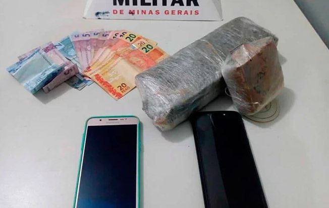 A representante legal de A.C.S, compareceu ao quartel e acompanhou todo o desenrolar da ocorrência. Foi realizado contato com o delegado de plantão em Patos de Minas o qual orientou que os envolvidos fossem encaminhados até a delegacia de plantão, situada na cidade de Patos de Minas. Além dos entorpecentes também foi apreendida a quantia de R$129,00 com J.S.L. e R$7,00 com o menor.