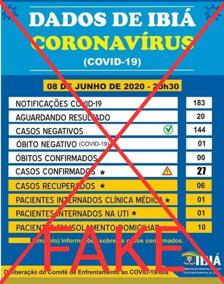 Boletim epidemiológico de Ibiá/MG é adulterado e compartilhado na internet