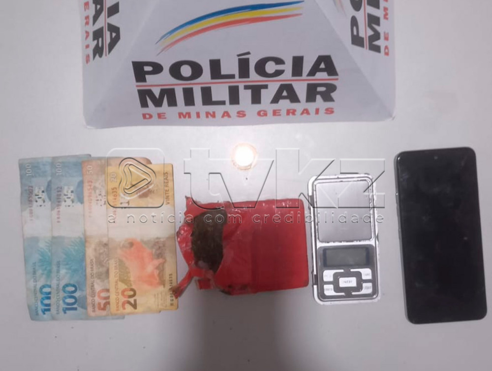 Na sacola foram encontrados o tablete de maconha, uma balança de precisão, um celular e R$ 271,00 em dinheiro.