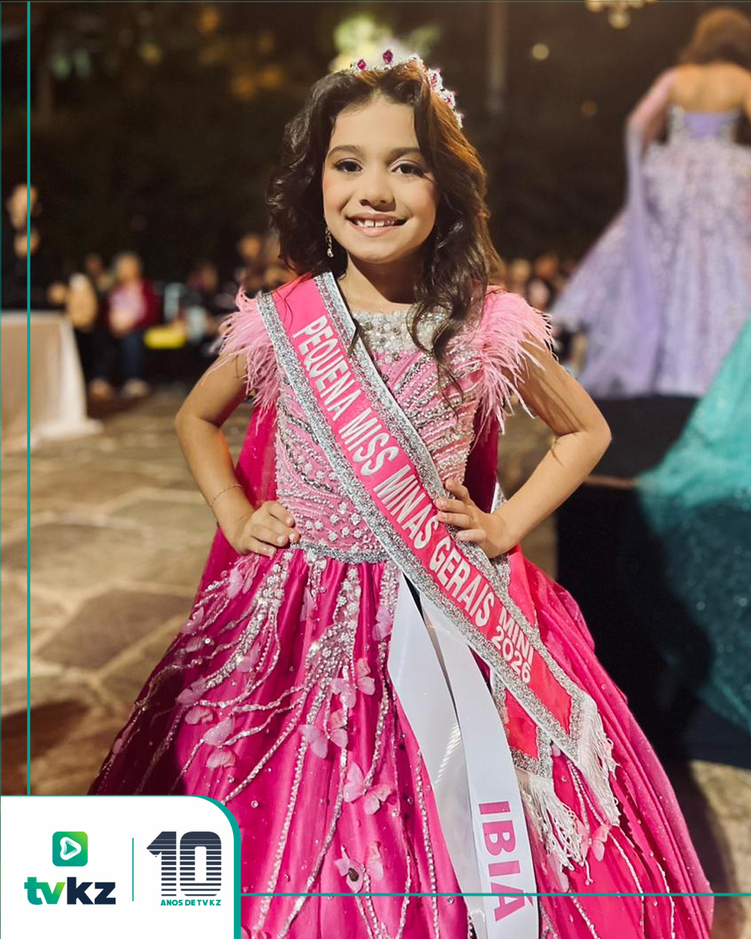 Marina Fonseca, de Ibiá/MG, foi coroada como Pequena Miss Minas Gerais 2026 no concurso realizado no último fim de semana em Conselheiro Lafaiete/MG. A representante ibiaense, de apenas 8 anos, garantiu a faixa após se destacar na etapa estadual.