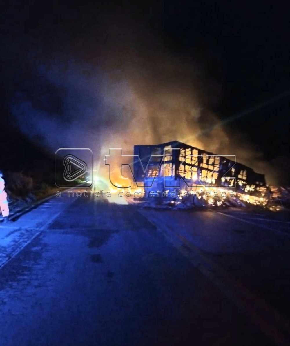 Segundo a Polícia Rodoviária Federal (PRF), ocorreu uma colisão frontal entre uma carreta Volvo carregada com farelo de soja e outra bitrem DAF que transportava cimento. Com a batida, os dois veículos pegaram fogo. O motorista da carreta que continha soja morreu no local. O outro, de 33 anos, sofreu lesões leves.