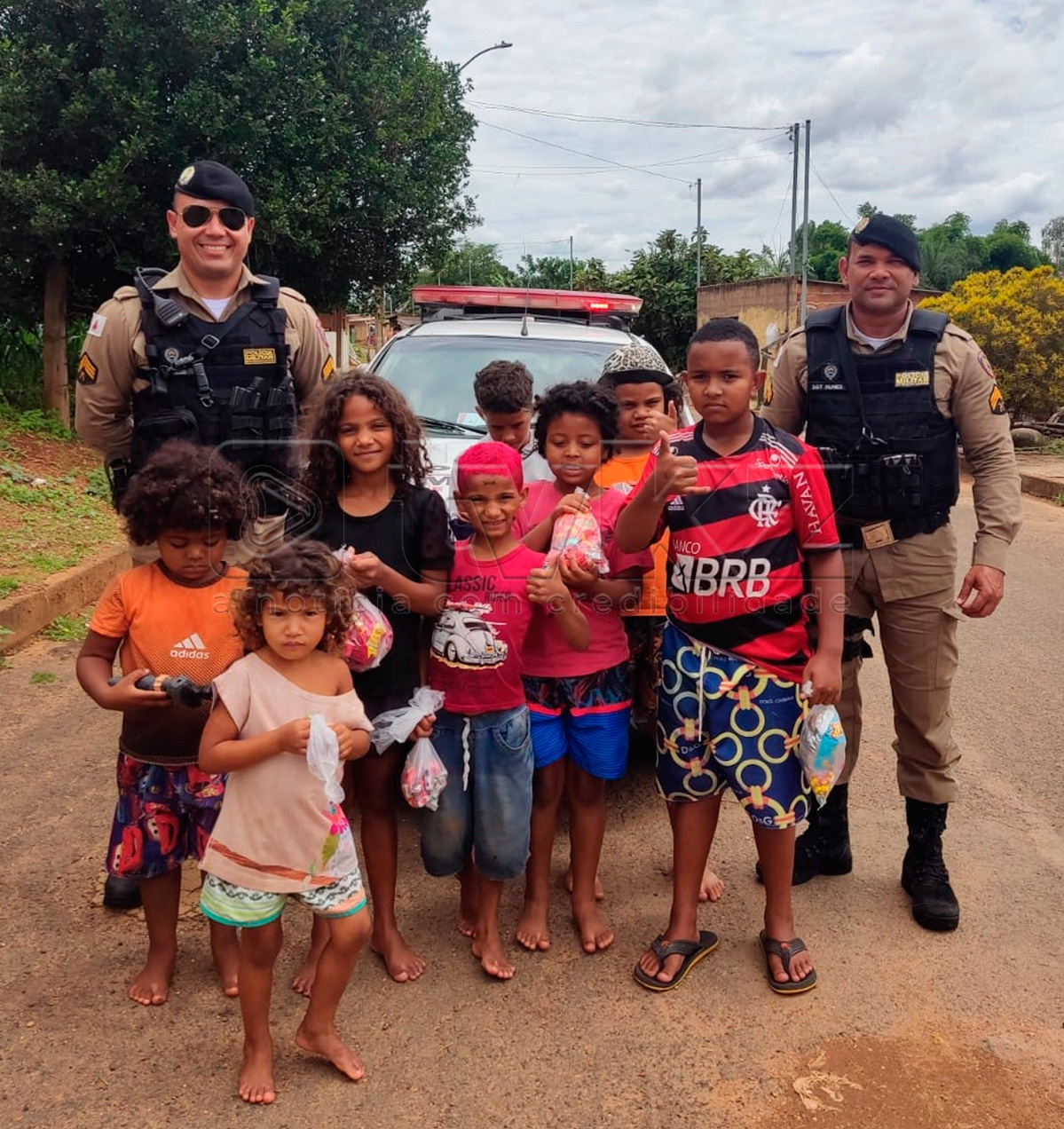 Segundo a Polícia Miliar (PM), a ação foi para levar paz e alegria às crianças, como uma forma de construir uma comunidade mais forte e fraterna.
