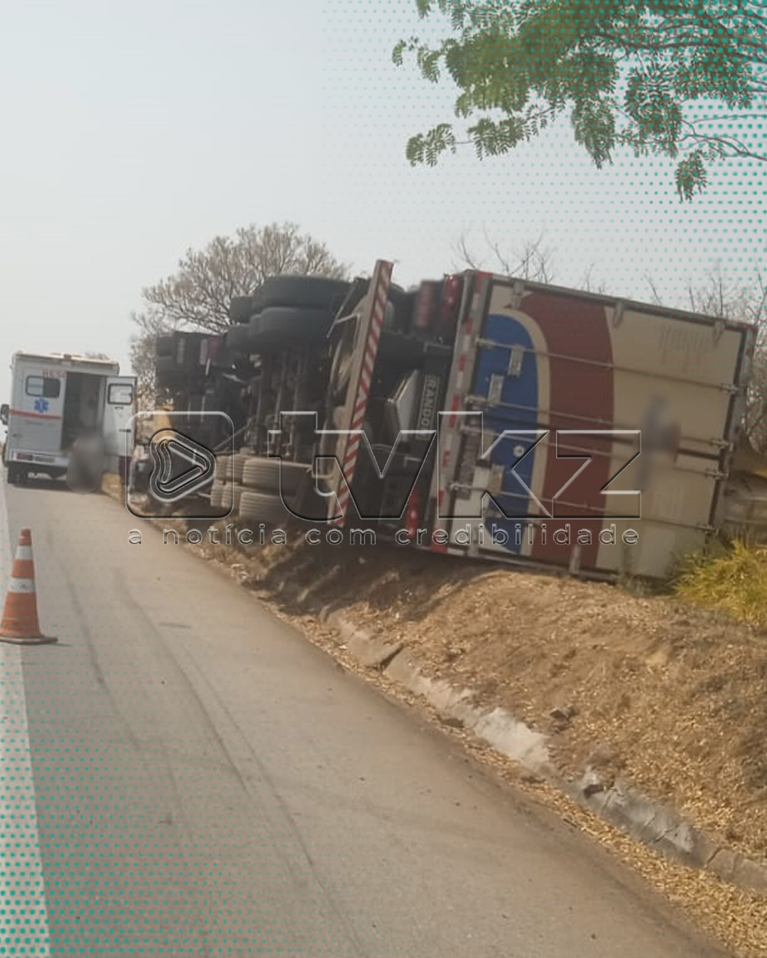 De acordo com informações obtidas pela reportagem da TV KZ, a carreta transportava alimentos refrigerados quando saiu da pista, ficando tombada na vegetação. O motorista, um homem de 63 anos de São Paulo, saiu ileso do tombamento.