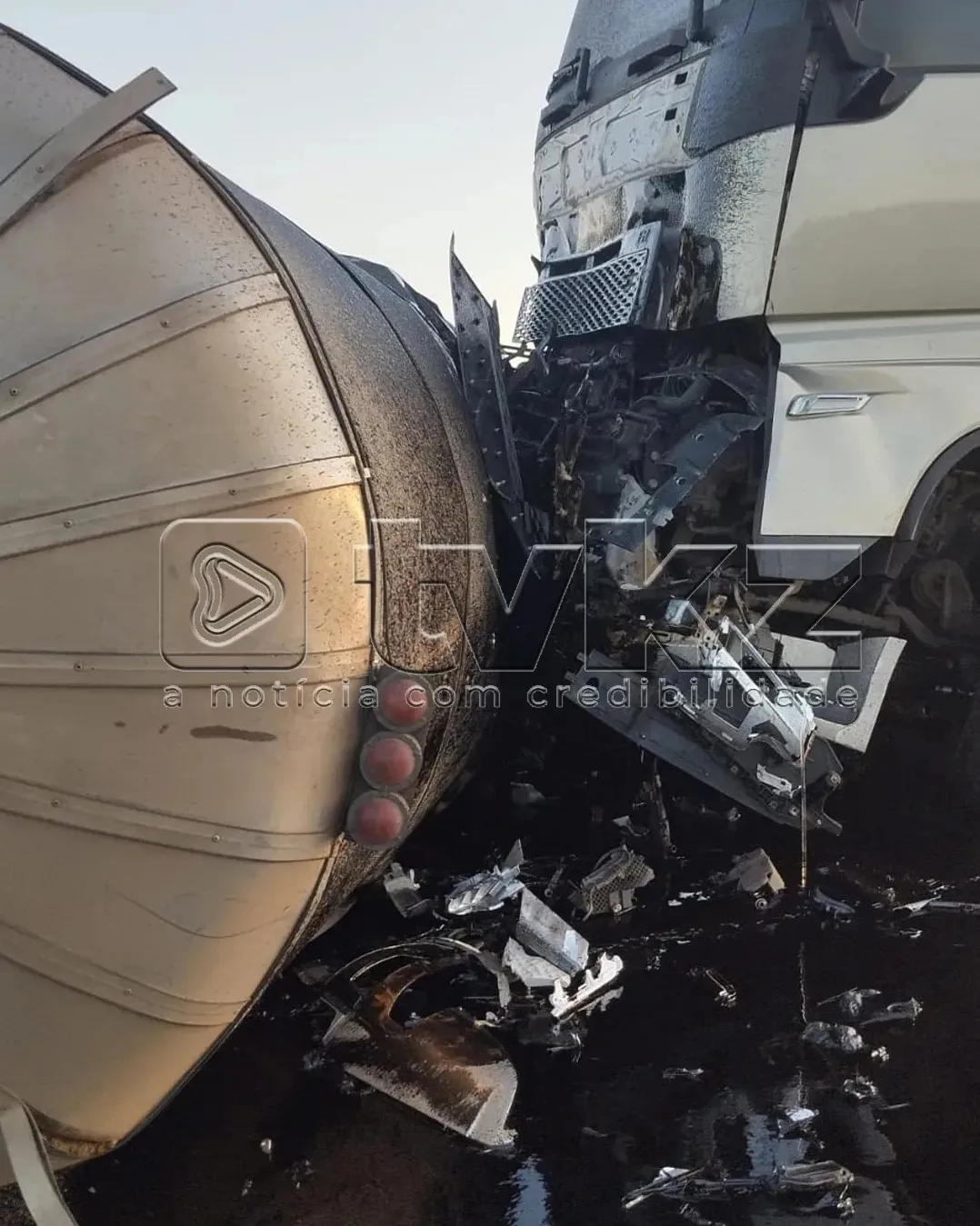 O trecho segue bloqueado nos dois sentidos desde as 17h10 de ontem (8) quando ocorreu um grave acidente envolvendo um carro e quatro carretas. Um dos veículos de carga transportava piche que derramou sobre a pista. O motorista do carro morreu.