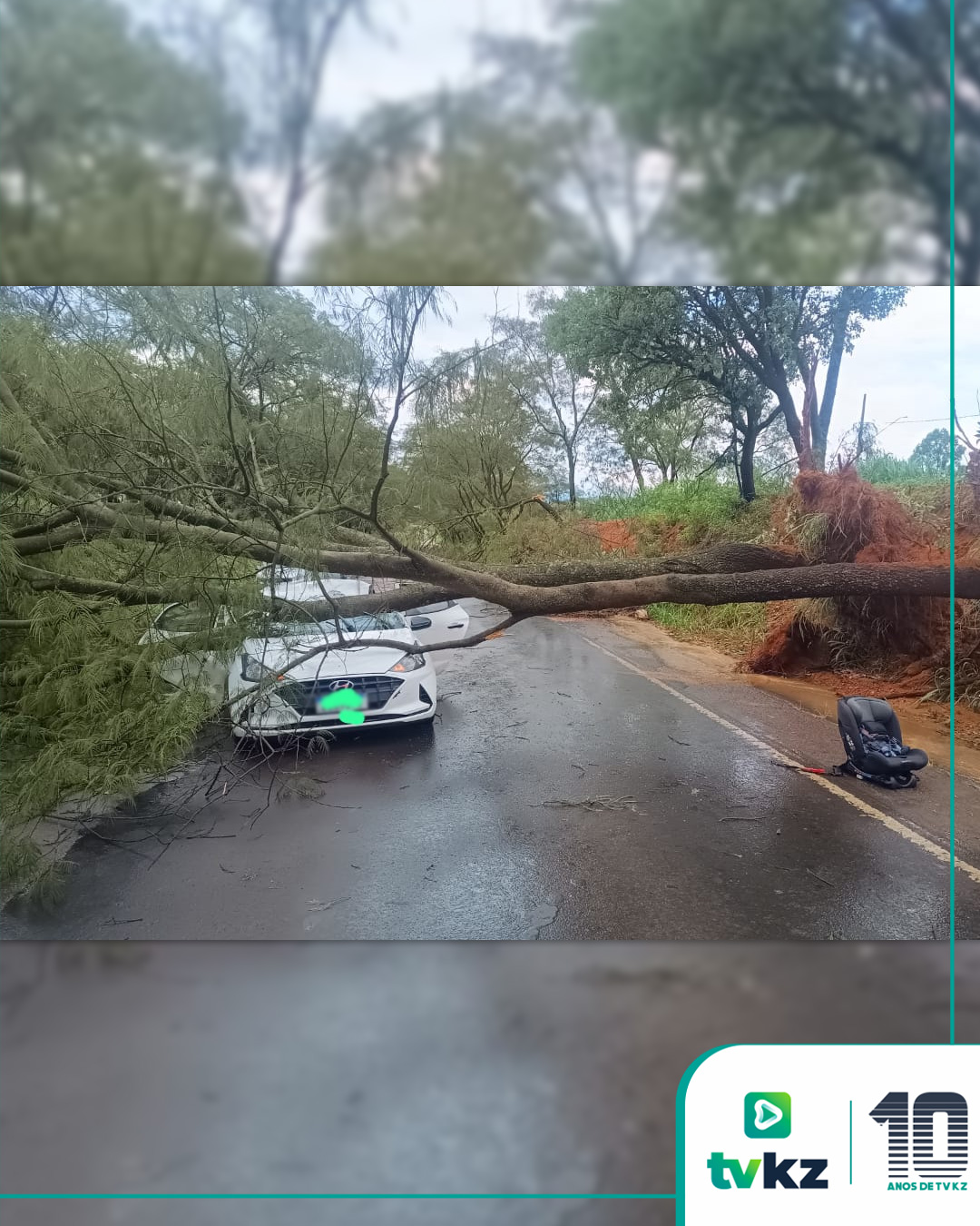 Um carro ocupado por uma família foi atingido por uma árvore na tarde desse domingo (28), por volta das 15h, no km 108 da MG-230, em Patrocínio/MG. O incidente ocorreu durante uma chuva com forte rajada de vento, quando uma árvore caiu sobre o teto do veículo, que estava em deslocamento pela rodovia.