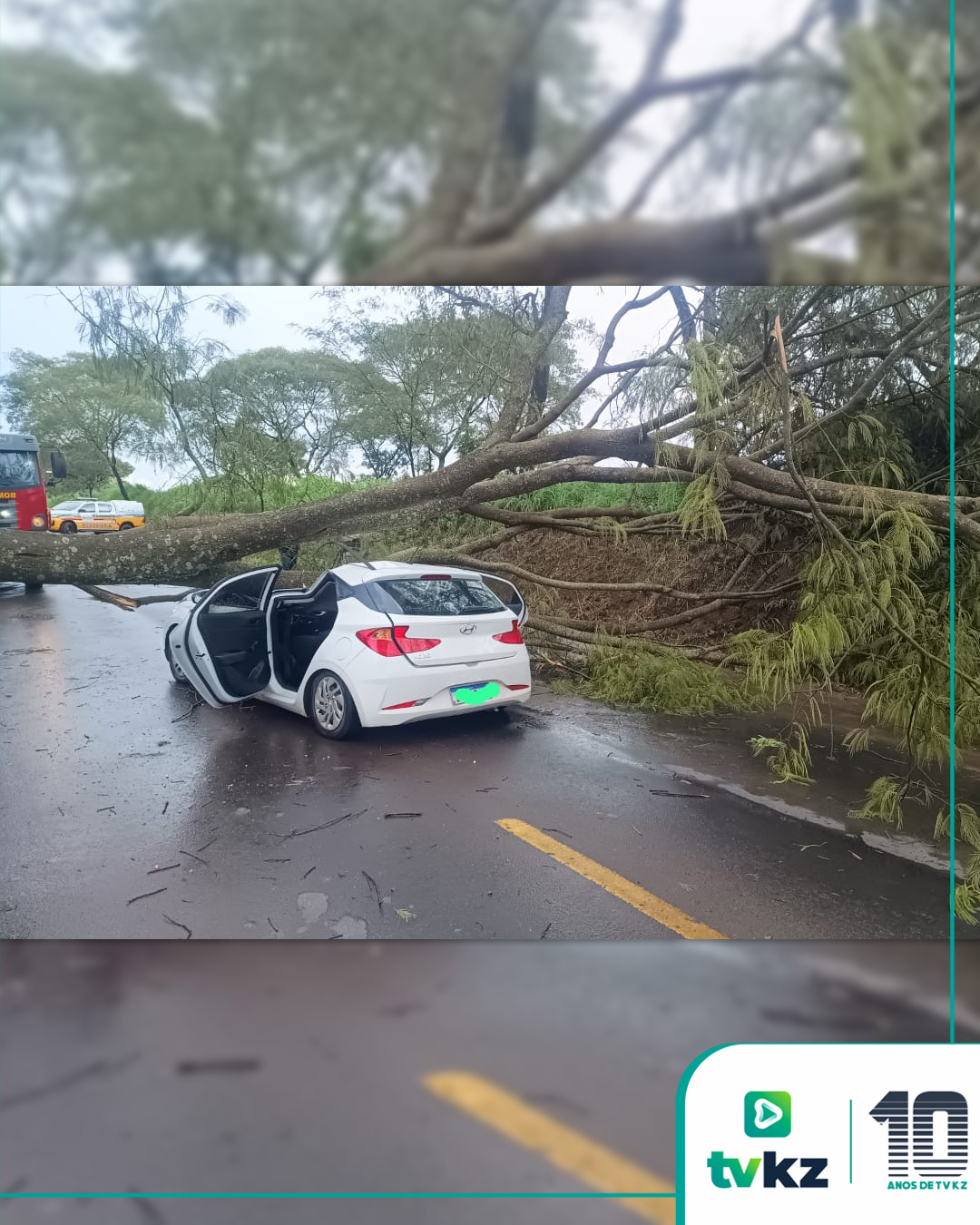 De acordo com o relato do condutor, eles trafegavam pela rodovia quando árvores foram derrubadas pelo vento, sendo que uma delas caiu sobre o veículo. A esposa dele e o filho saíram sem ferimentos.