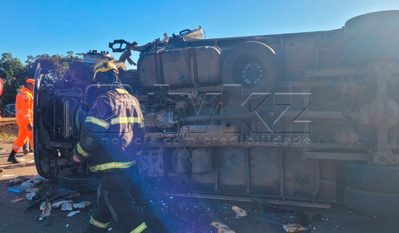 A Polícia Militar Rodoviária (PMRv) também esteve no local do acidente.