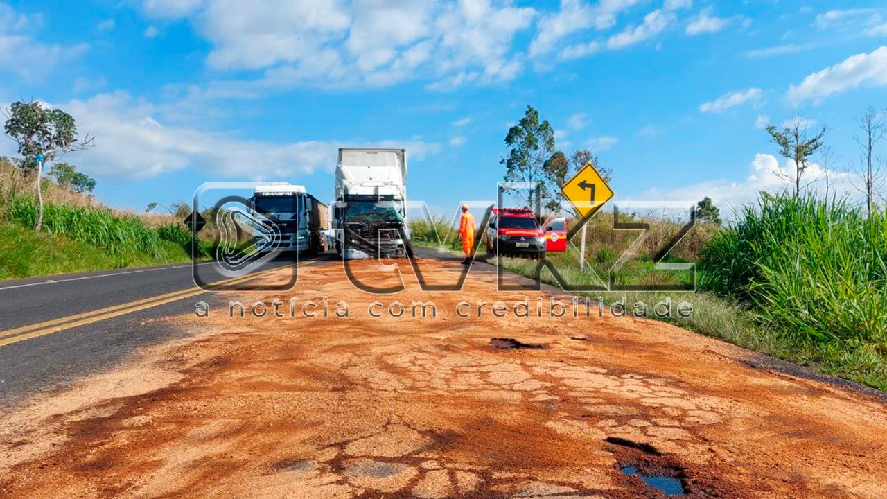 Segundo informações do Copo de Bombeiros, a colisão envolveu um caminhão, carregado com botijões de gás de cozinha, e uma carreta. A carga ficou intacta.
