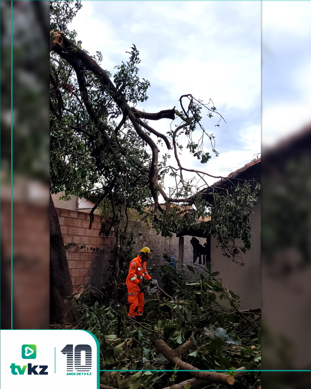 Parte de uma árvore caiu sobre uma casa em Sacramento/MG. O Corpo de Bombeiros Militar (CBMMG) foi acionado, nessa terça-feira (4), para a remoção depois que dois galhos de grande porte atingiram o telhado do imóvel após os fortes ventos registrados no dia anterior.