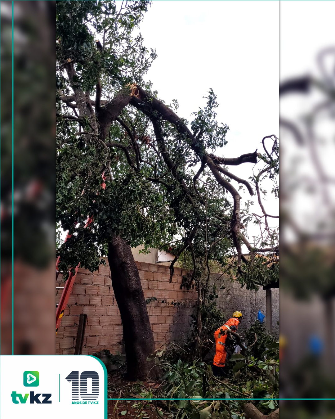 De acordo com os bombeiros, tratava-se de um abacateiro de cerca de 18 metros. A guarnição realizou a poda e retirada segura dos galhos de grande porte que estavam sobre a casa, utilizando escada, cordas e motosserra, deixando a área livre de riscos após o atendimento. Ninguém ficou ferido e não houve danos materiais.