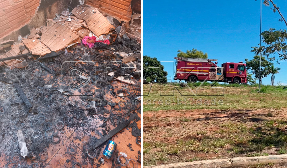No imóvel residem um homem e sua mãe. Os dois estavam fora do local quando ocorreu o incêndio.