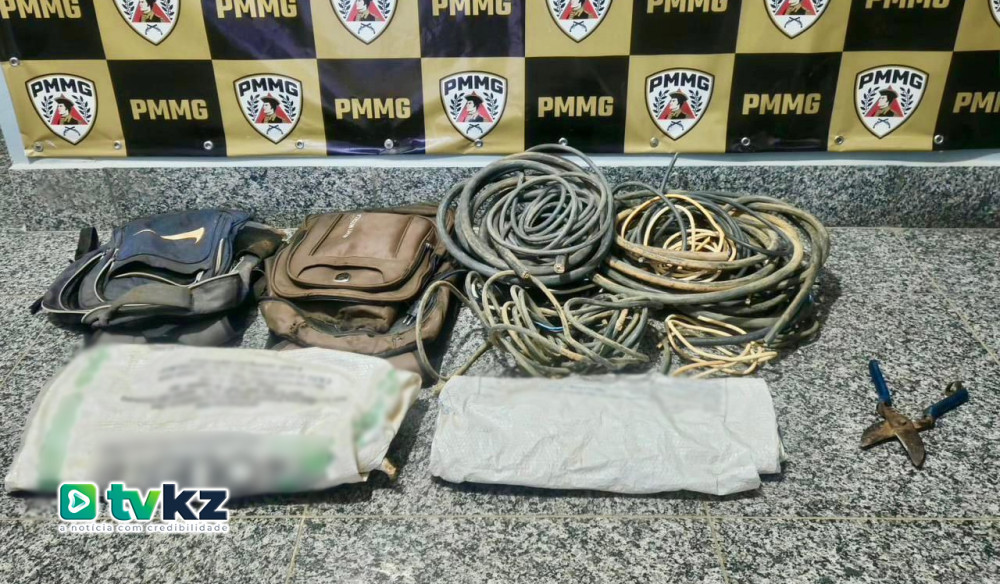 Durante a abordagem, foram encontradas mochilas contendo cabos de energia elétrica, além de uma tesoura de uso agrícola, que teria sido utilizada para cortar a fiação. A vítima informou ainda que o local havia sido alvo de furtos durante a madrugada e novamente ao longo do dia, logo após a realização de reparos nos cabos anteriormente furtados.