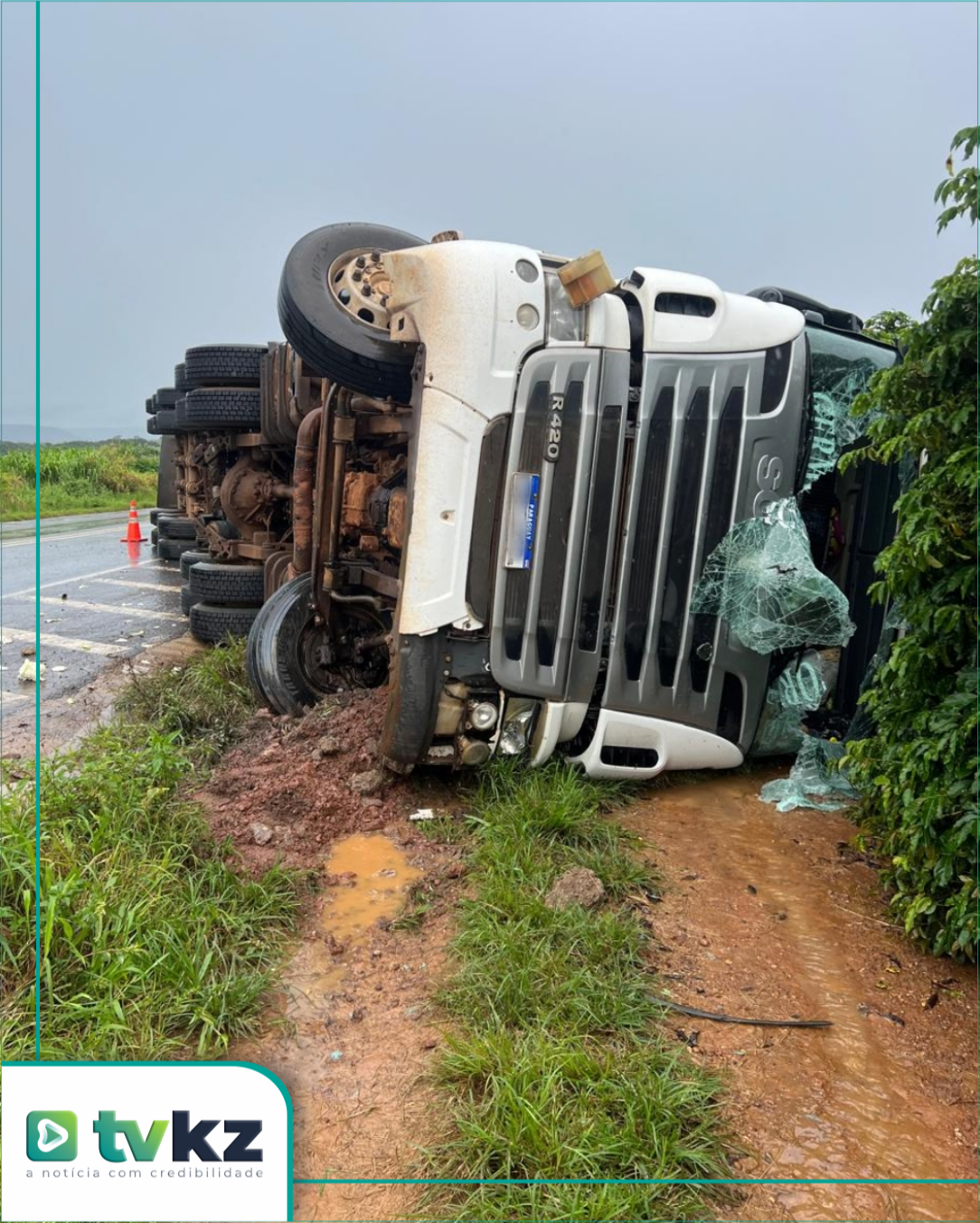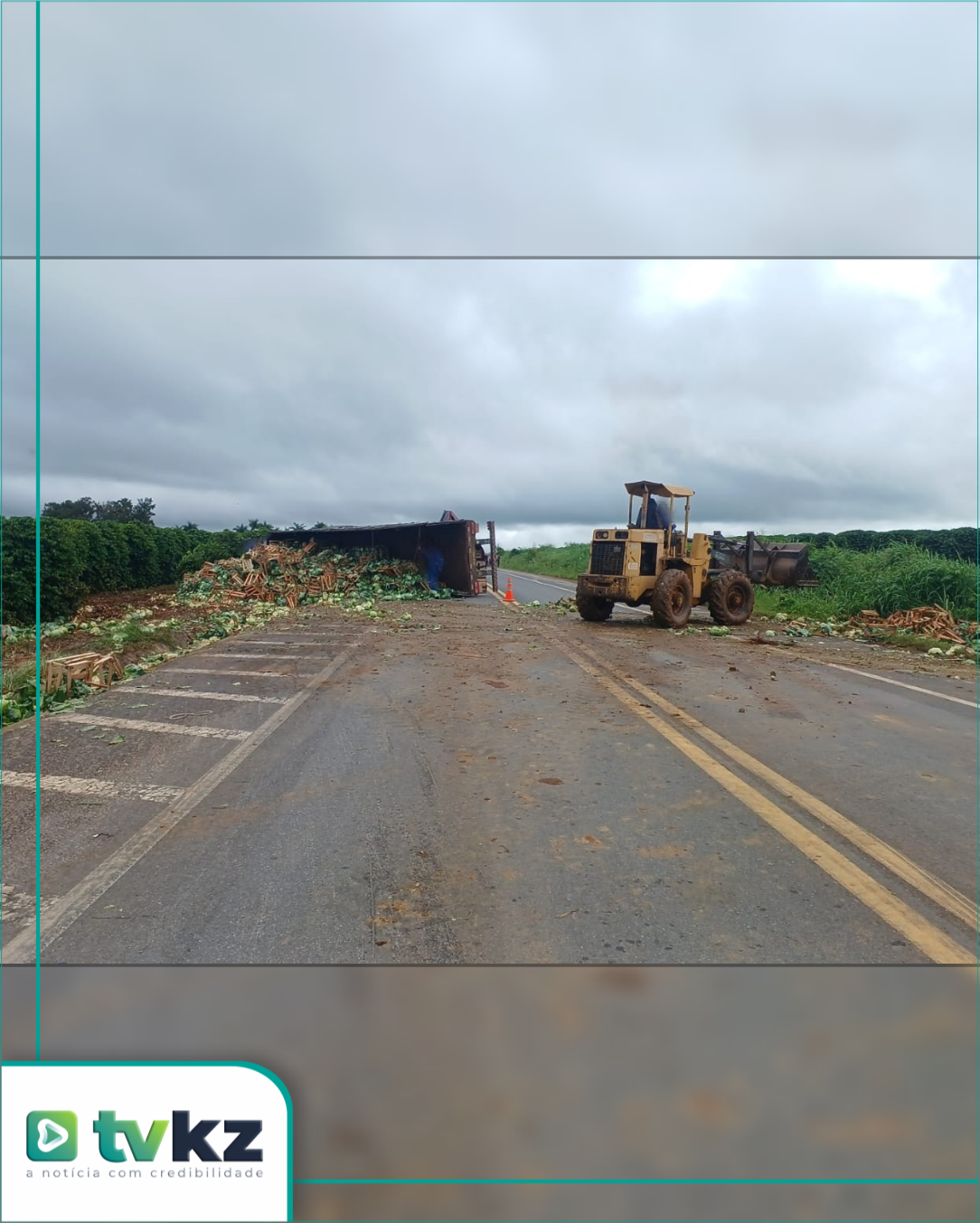 Uma carreta Scania, com placas do Paraguai, tombou no início da tarde dessa quinta-feira (22), no km 68 da BR-146, em Serra do Salitre/MG. O acidente ocorreu por volta das 13h30. A carreta, que transportava repolhos, ficou ocupando parte da via, assim como a carga.