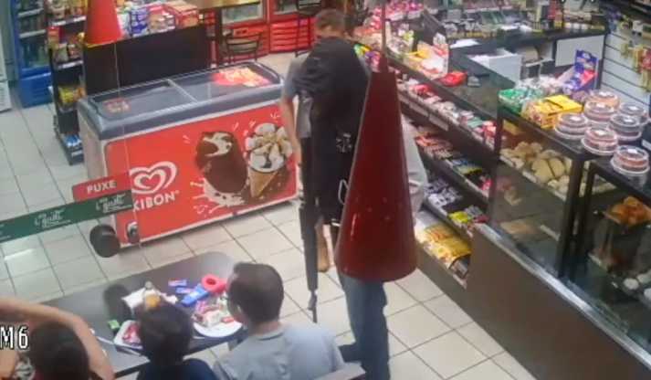 Três bandidos utilizando uma arma longa, tipo fuzil, invadiram loja de conveniência de posto localizada na praça Frei Eugênio, região central de Uberaba/MG, por volta das 21h20 desse domingo (12), e anunciaram o assalto.